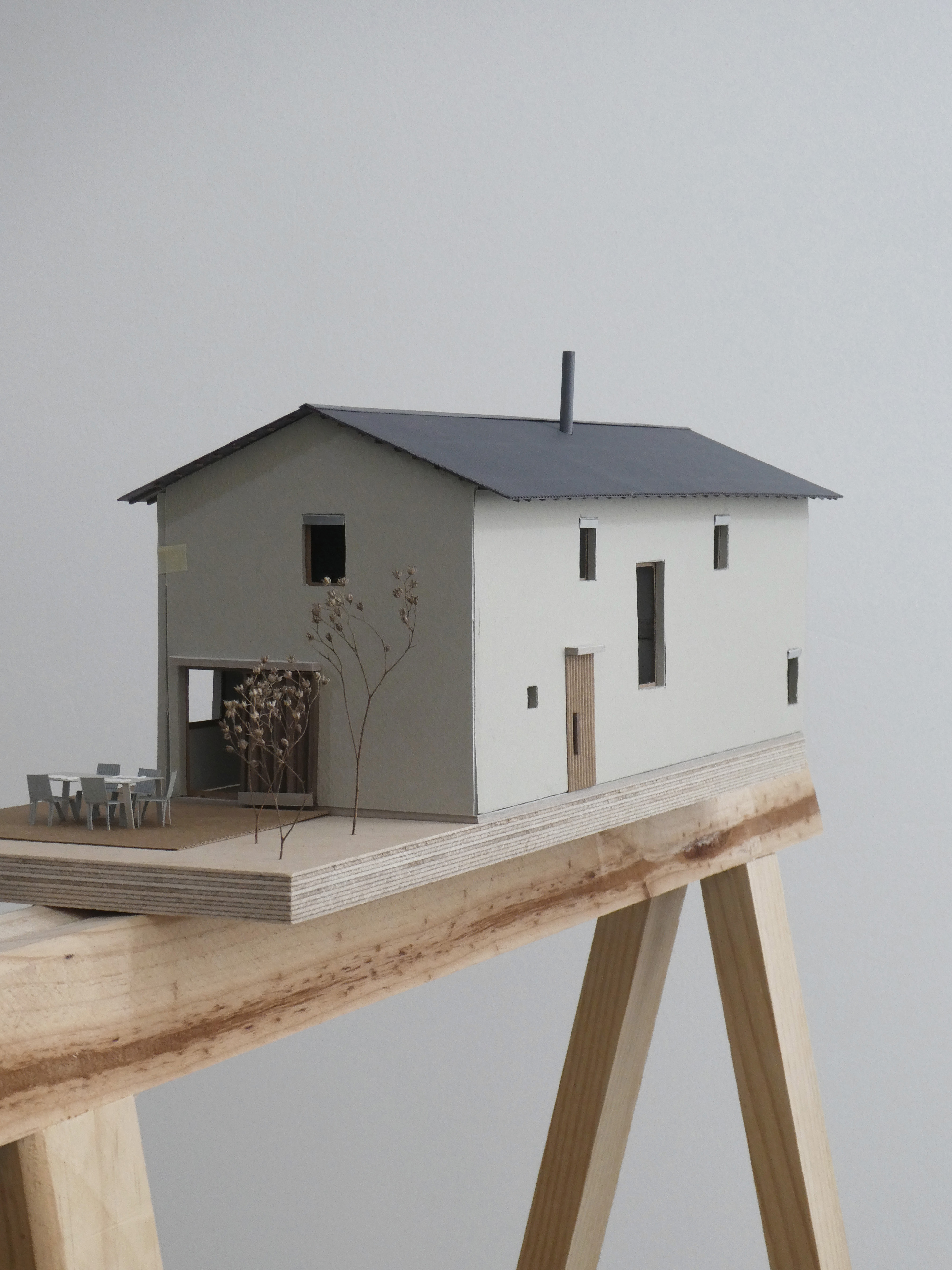 Le projet concerne la construction d’une maison unifamiliale en contrebas du château d’Oyez, sur la commune de Saint- Simon. La volonté est de retravailler la typologie de la maison de maître auvergnate, déjà présente dans le village. La volumétrie est ainsi similaire au modèle d’origine mais beaucoup plus de générosité est présente au niveau des ouvertures de la façade sud qui permettent d’admirer le paysage depuis l’intérieur. En façade nord par contre, il n’y a pas de composition stricte recherchée, et les ouvertures sont disposées de manière libre, répondant seulement à leur fonction associée.